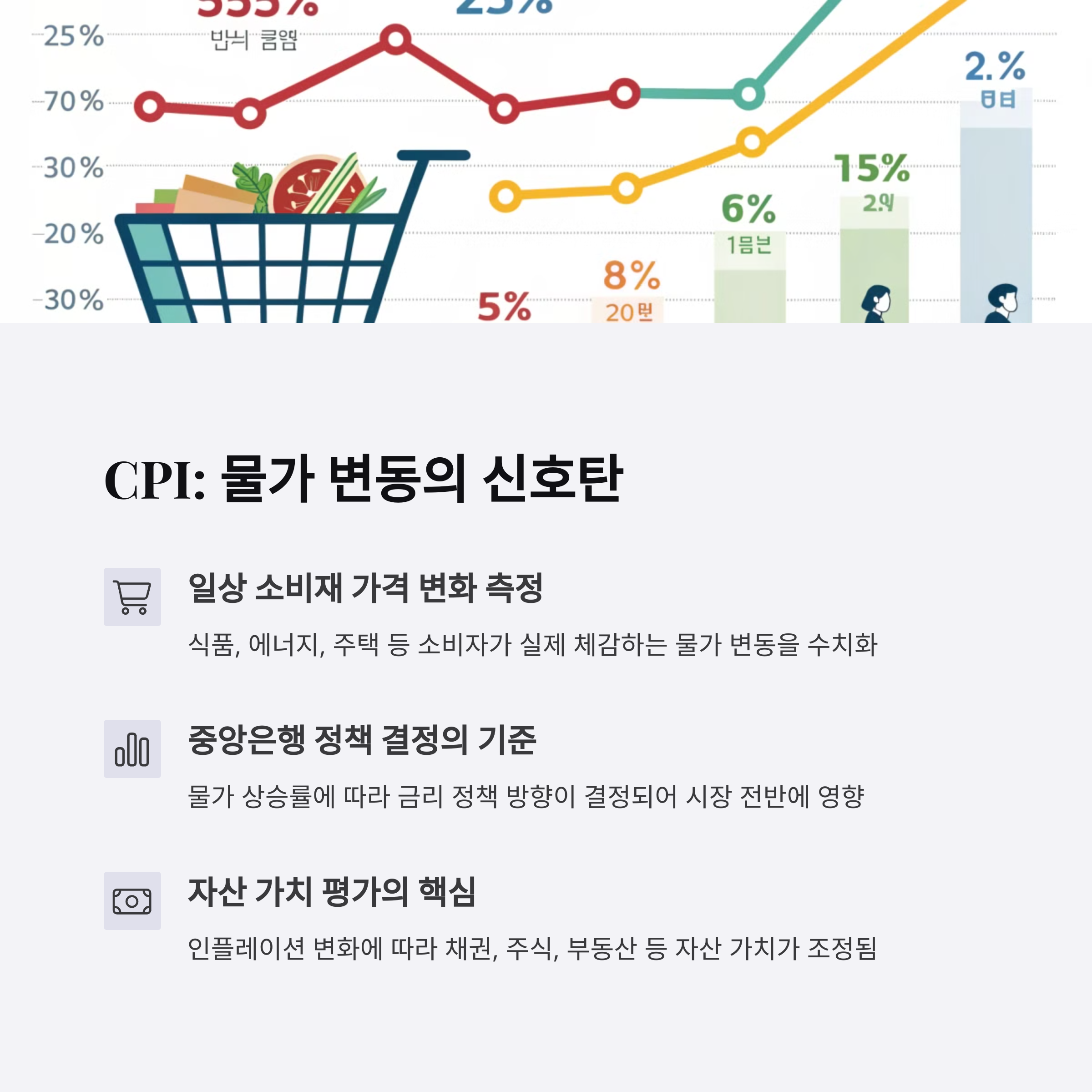 | 물가 상승률 판단 기준이 되는 핵심 지표입니다. | 노동 시장의 건강성을 보여주는 대표적 데이터입니다. | 시장 전체에 즉각적인 영향을 주는 핵심 발표입니다. |