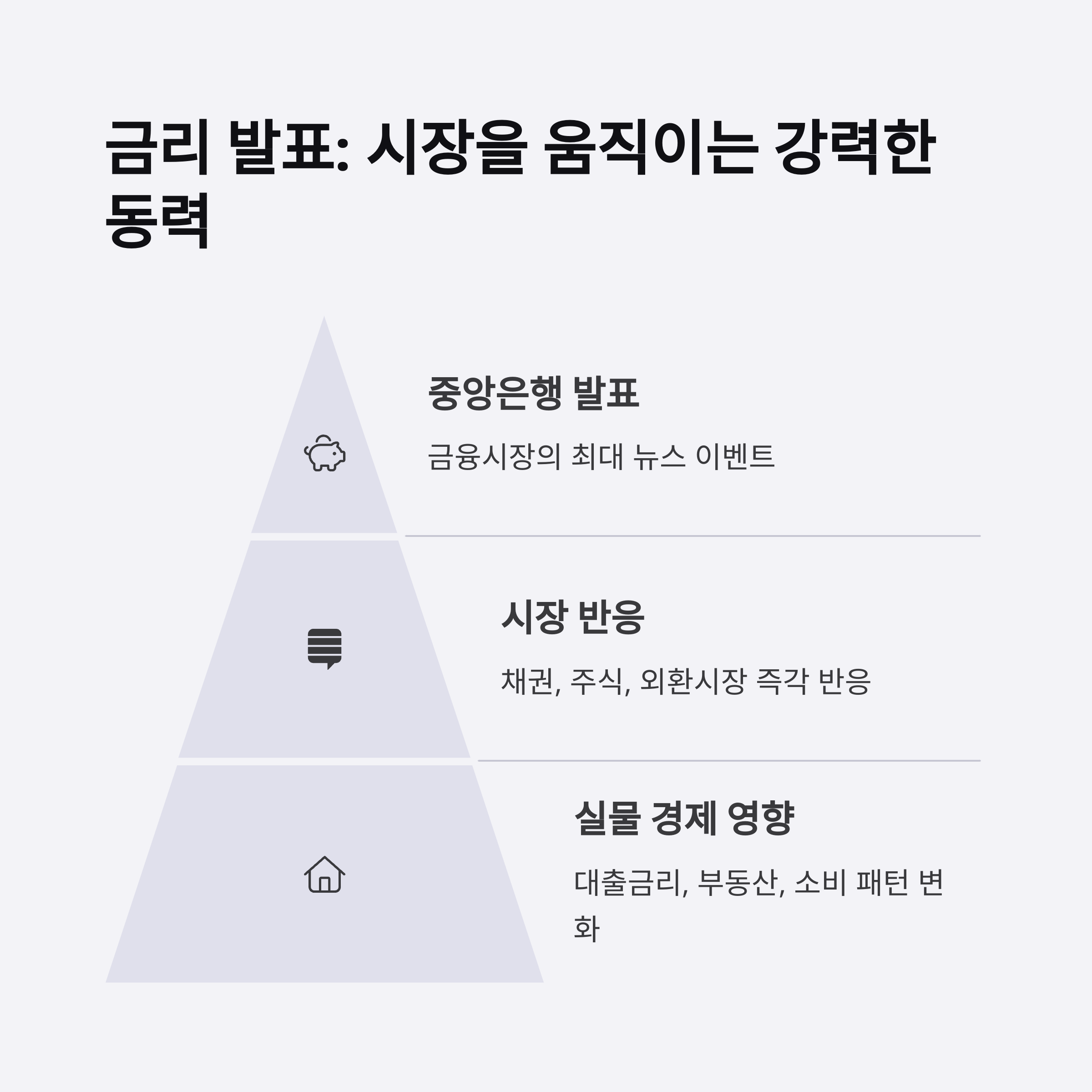 | 연준의 통화정책 방향을 예측하는 데 사용됩니다. | 실업률 하락은 소비 확대 가능성과 연결됩니다. | FOMC 결과에 따라 주식, 채권, 환율이 움직입니다. |