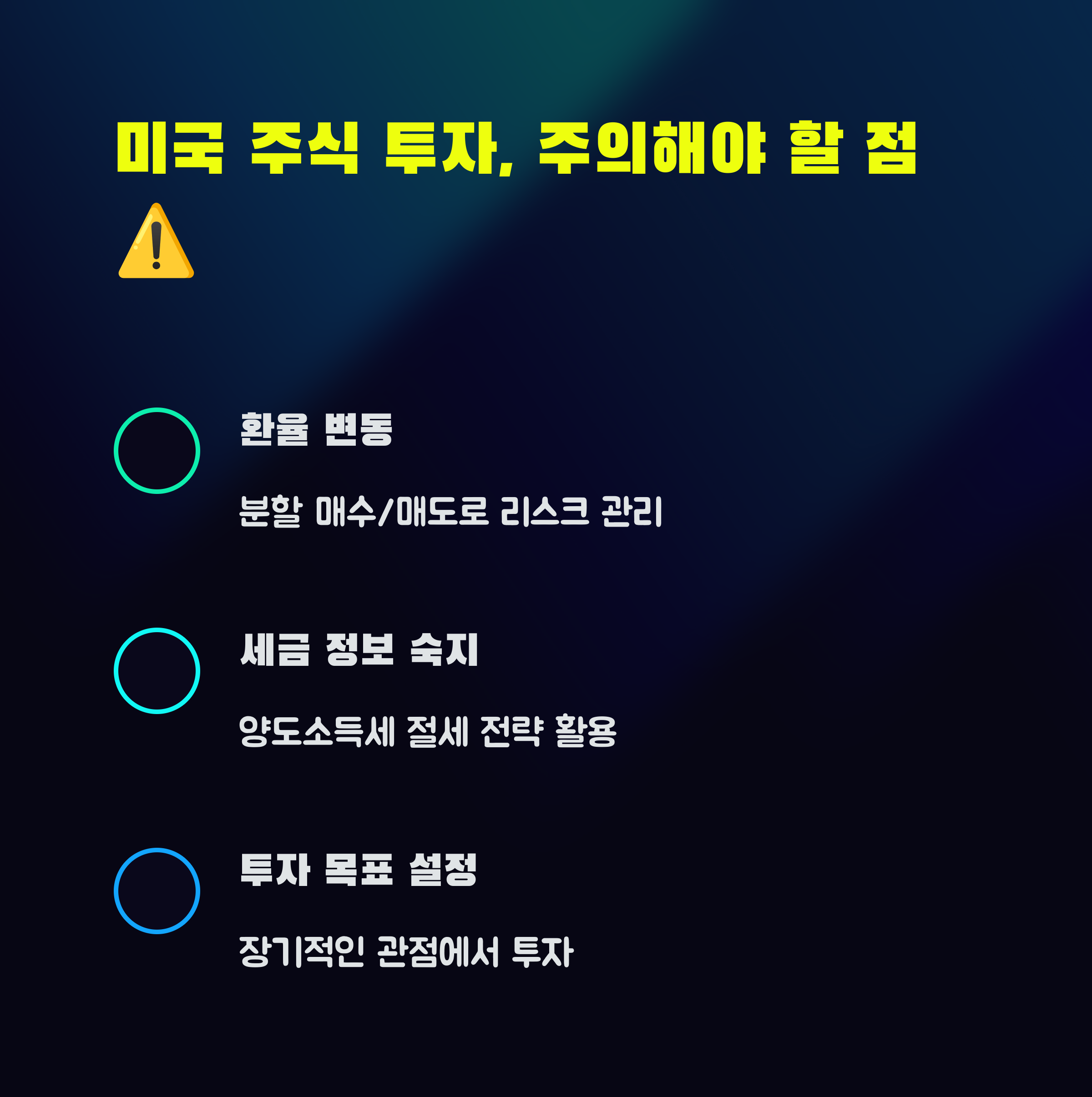 미국 주식 투자는 어렵지 않지만, 계좌 개설과 초기 설정이 매우 중요합니다. 올바른 시작은 불필요한 실수를 줄이고, 안정적인 수익으로 이어질 수 있습니다. 지금 바로 자신에게 맞는 브로커를 찾아보고, 첫 투자를 준비해보시기 바랍니다.